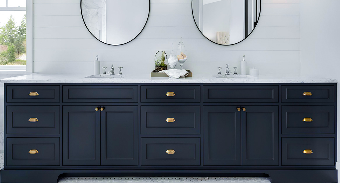 Elegant moisture-resistant vanities combining European aesthetics with practical storage for bathrooms of all sizes.