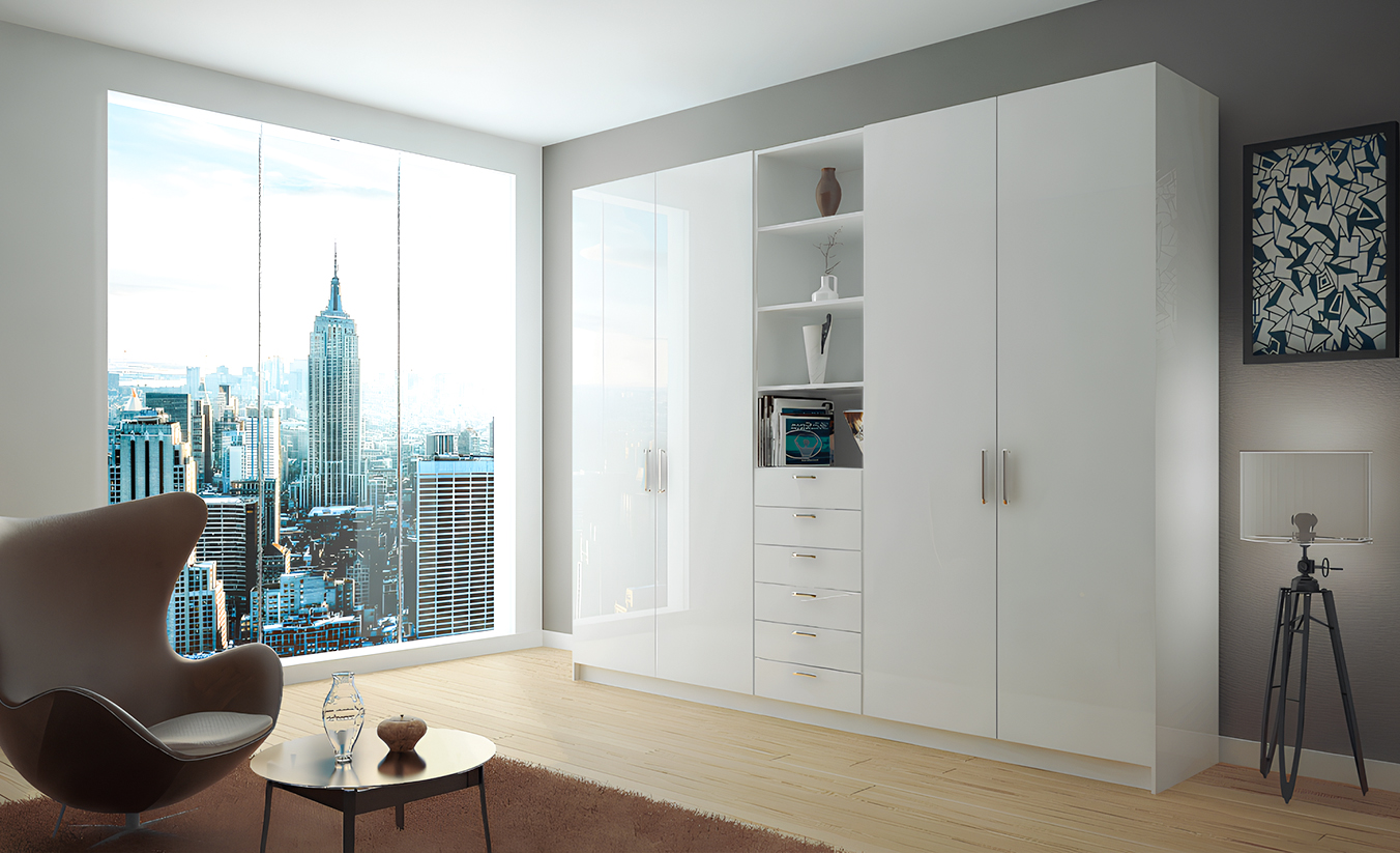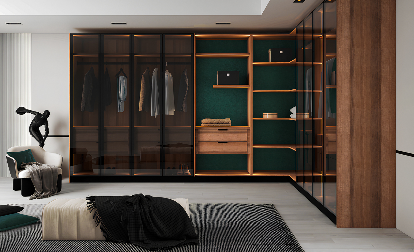 Space-maximizing wardrobes with smooth-gliding mechanisms and intelligent organizers in finishes that match your kitchen.