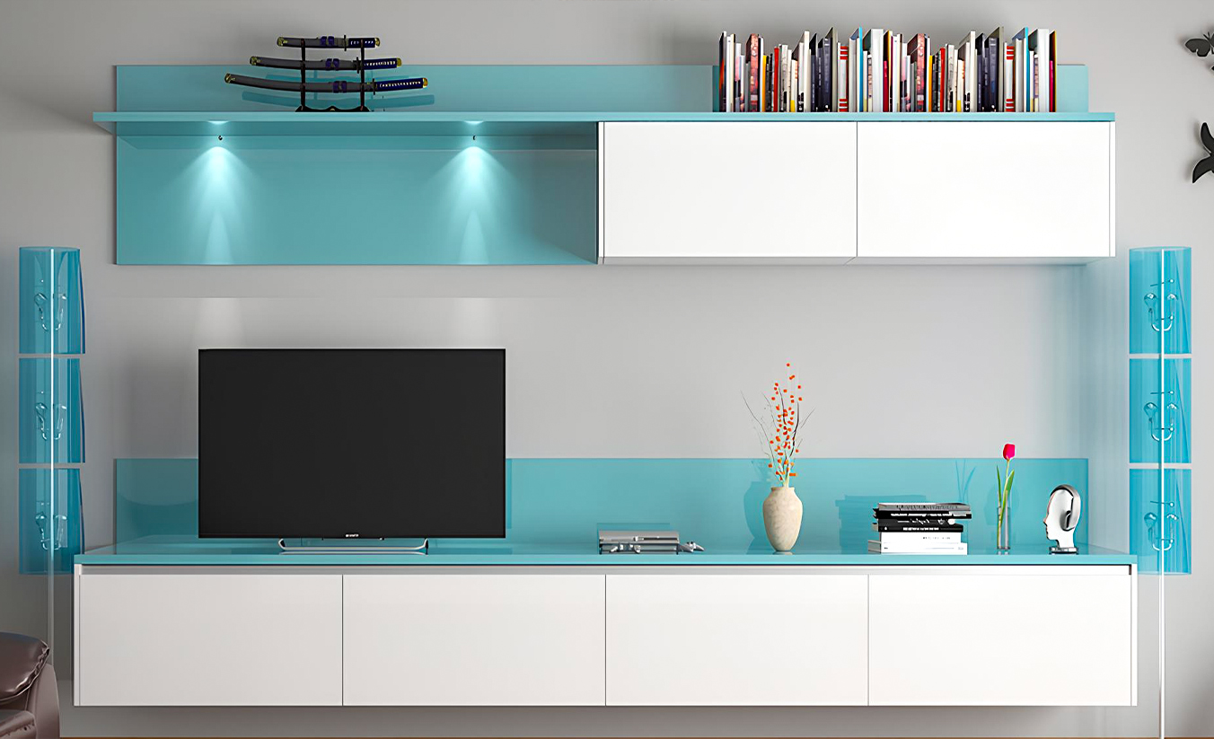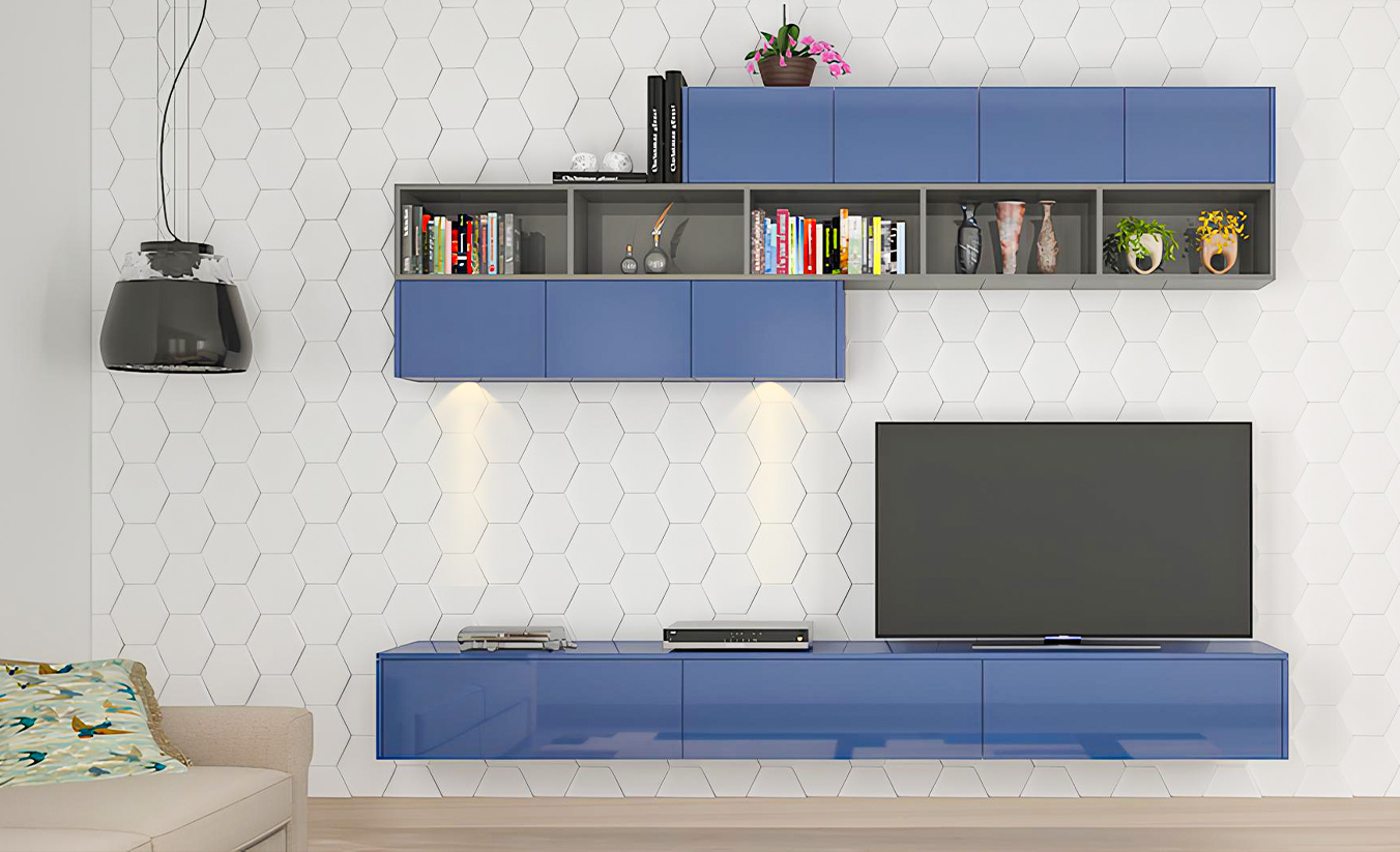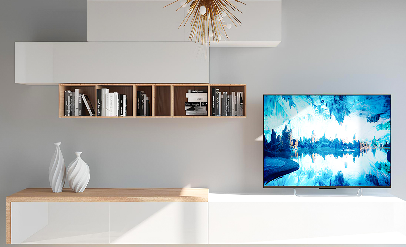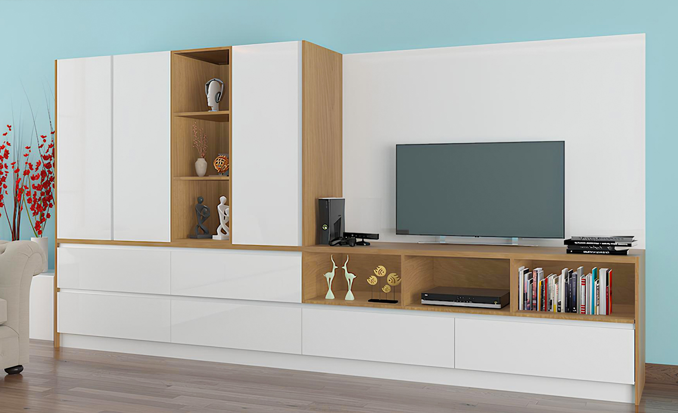 Sleek entertainment units with integrated storage and cable management for a sophisticated, clutter-free appearance.